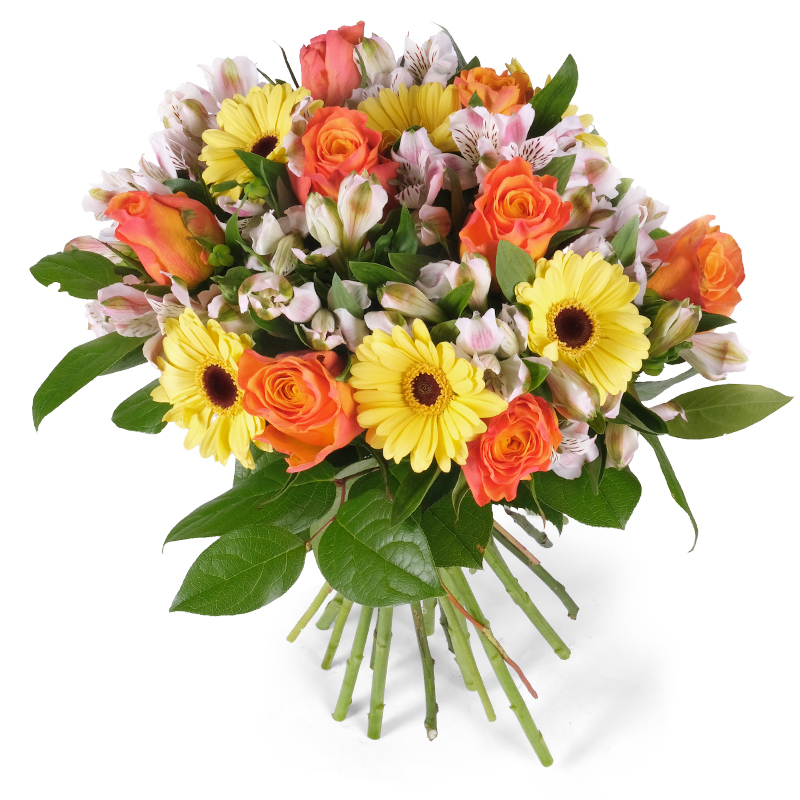 Szczere róże, radosne gerbery i delikatne alstromerie w otoczeniu świeżych liści tworzą kompozycję, która oddaje autentyczne emocje. To prezent, który mówi wszystko, co trudno wyrazić słowami. Niech kwiaty przekażą Twoje uczucia już dziś.