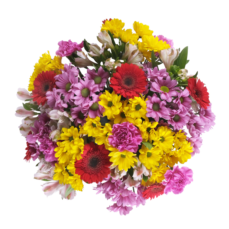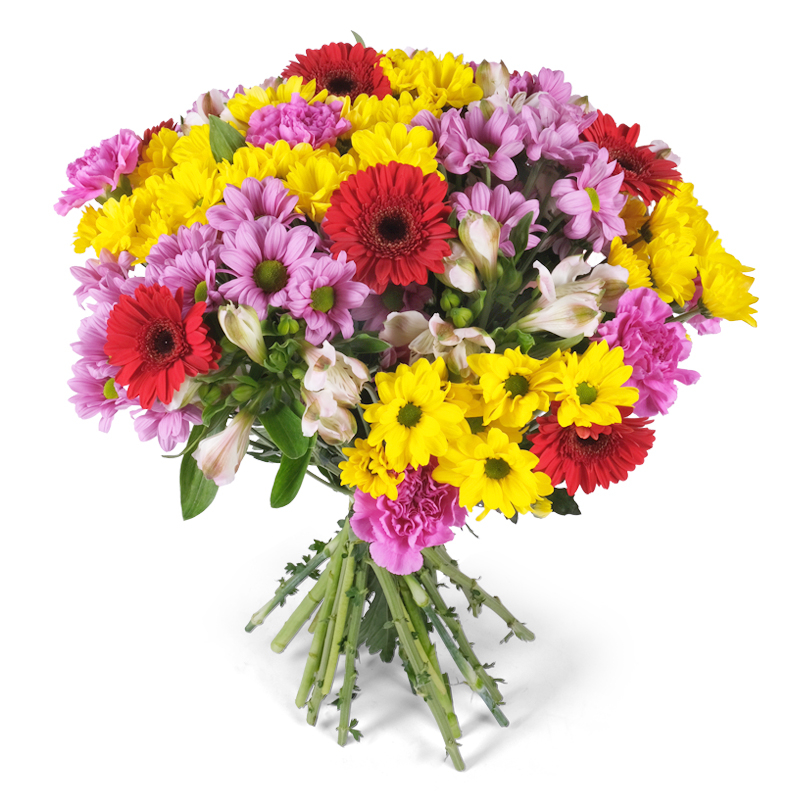 Zawsze świeże kwiaty Ten bukiet to jak najlepsza wersja dnia - pełna koloru, energii i dobrych wibracji. Gerbery, santini, goździki i alstromerie układają się w harmonijną całość mimo swojej różnorodności. To prezent dla kogoś, kto kocha intensywne doznania i ceni sobie odrobinę szaleństwa w codzienności. Dodaj bilecik i popraw komuś humor!