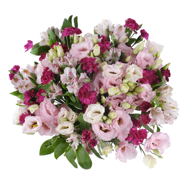 Bukiet Miłosny List to kompozycja złożona z eustomy, alstromerii i goździka – bez przybrania, w naturalnej formie. Jasne odcienie przełamane ciemniejszym akcentem goździka nadają jej charakteru. Do bukietu możesz dołączyć bilecik z życzeniami, podpisem lub wyznaniem.